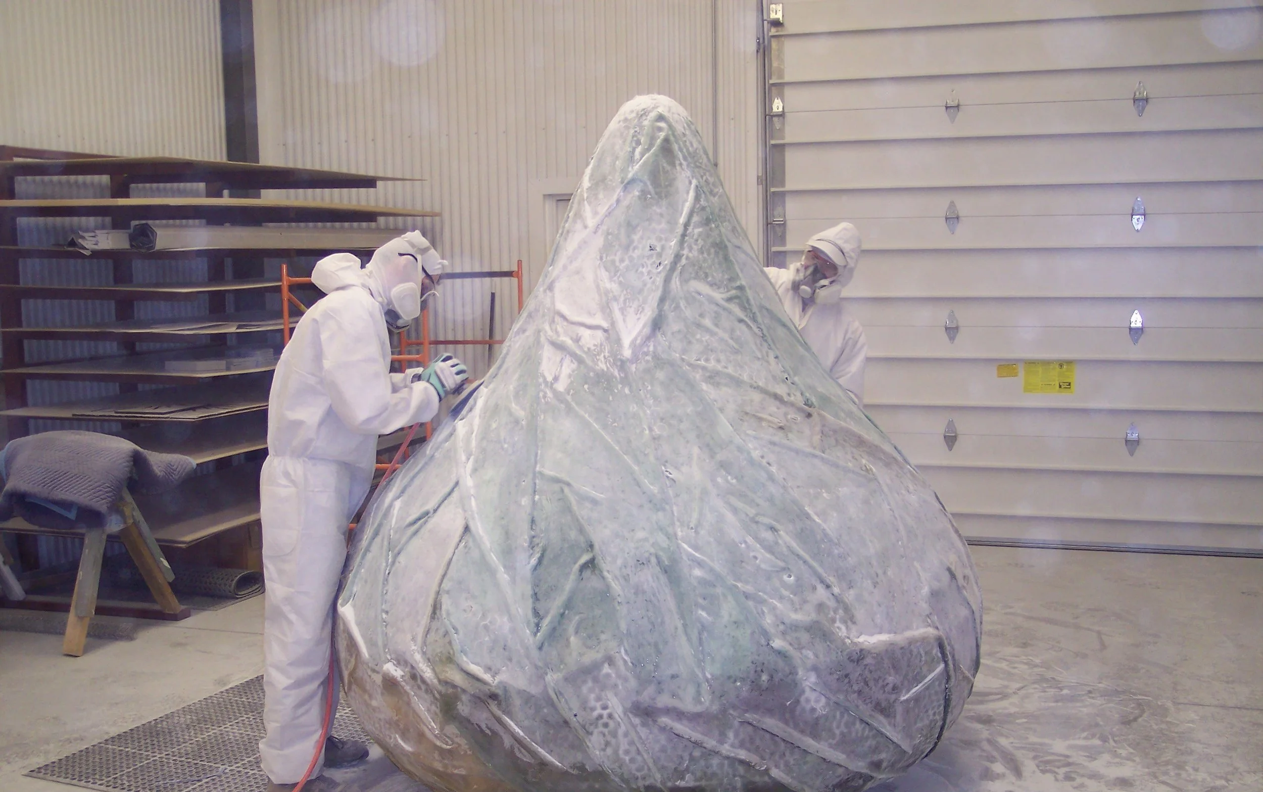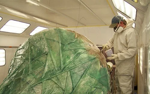 192 square feet of wire mesh was then tied onto the skeleton over two days. Fifteen gallons of fiberglass resin was applied next to create the folds and wrinkles of a wrapped HERSHEY'S Kiss.