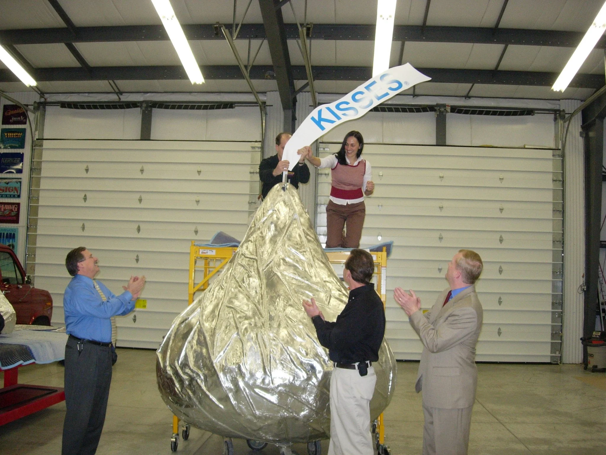 The Kiss was designed and constructed by Stoner Graphix, Inc., a custom dimensional sign and visual communication company in Hummelstown, in cooperation with The Hershey Company and the Hershey Entertainment & Resorts Company.